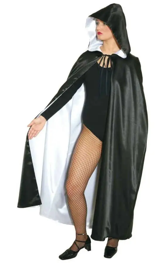 Cape réversible noire et blanche avec capuche.