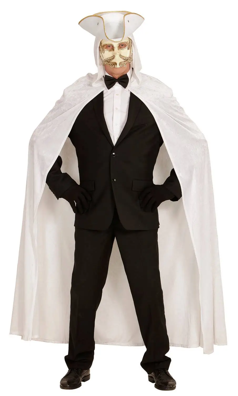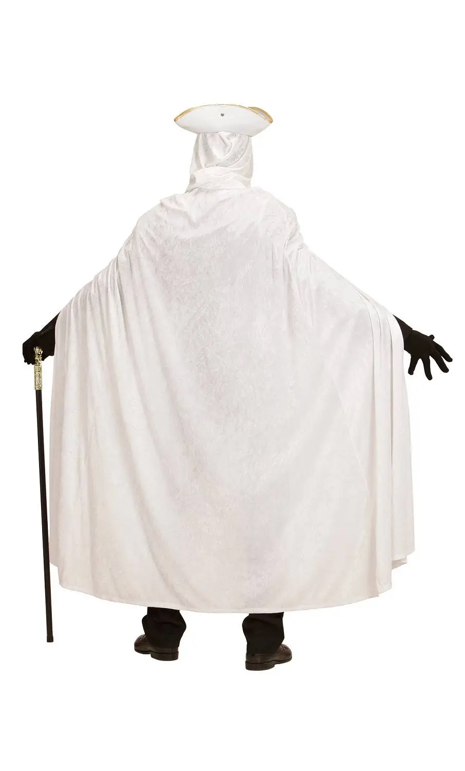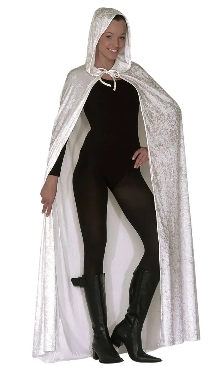 Cape blanche en velours pour adulte. C’est une cape blanche avec capuche en taille unique, hauteur au dos environ 150cm.