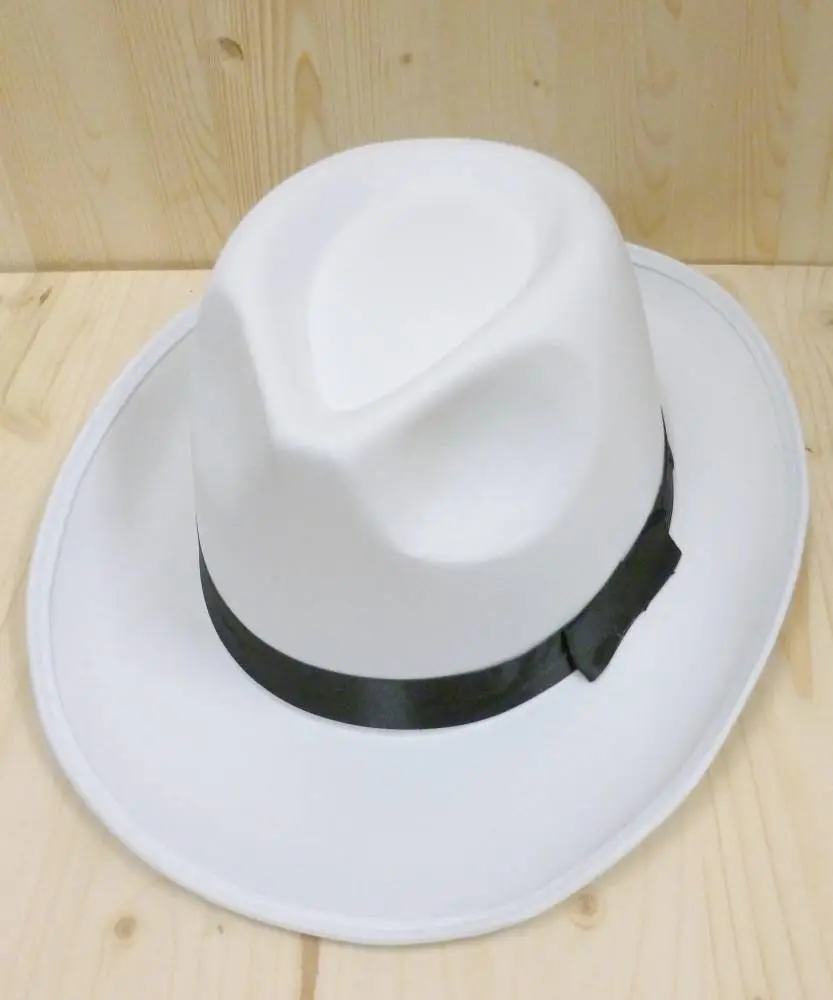 Avec un costume à pinces, une rose, un mouchoir dépassant de la poche de poitrine, un faux cigare et un Borsalino blanc, vous voilà transformé en véritable gangster des années 30.