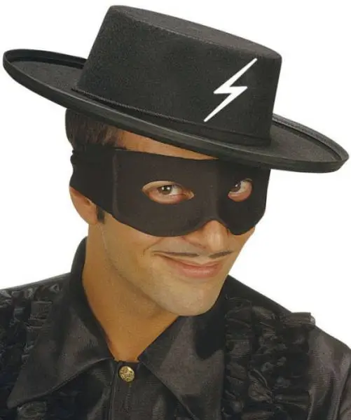 Si vous accompagnez ce chapeau d’un masque noir et d’une fine moustache, ni vu ni connu, vous ressemblerez au fameux Zorro qui signe son nom de la pointe de son épée .