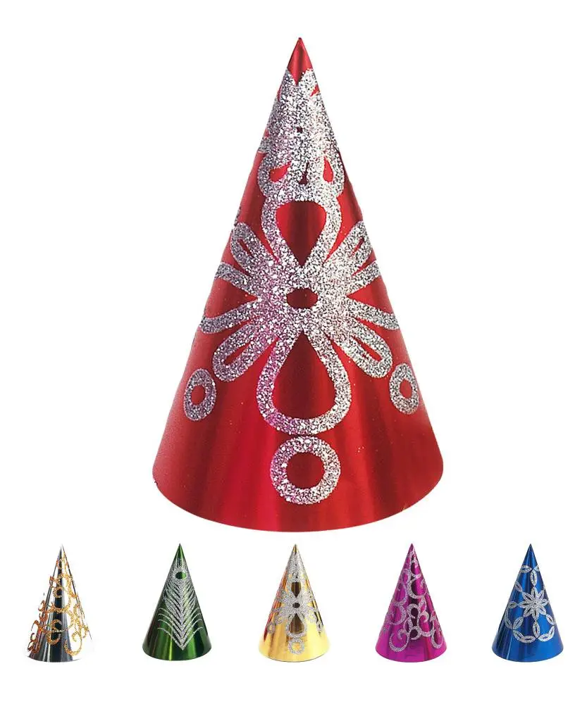 Cet accessoire en forme de cône coloré est un couvre-chef parfait pour animer une fête d’ anniversaire. Porté à plusieurs, le côté brillant en fait des chapeaux Réveillon des plus festifs.