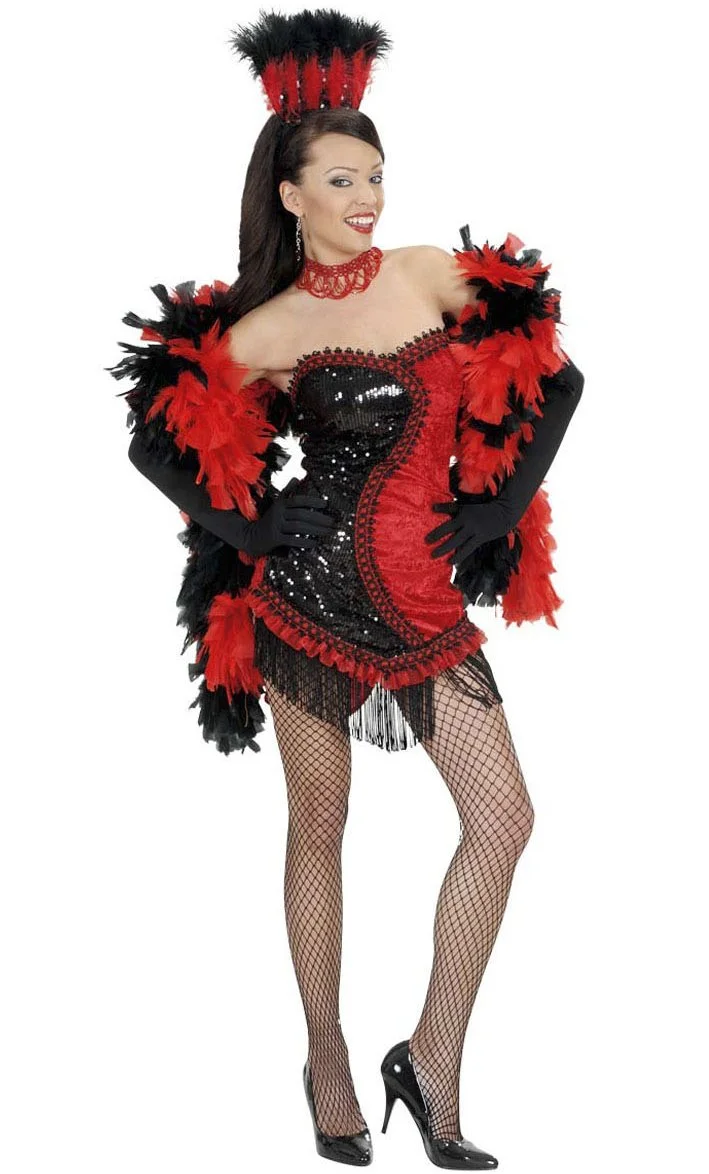 Le devant de la robe est moitié noir + moitié rouge, le dos est rouge.Les parties rouges sont en velours.