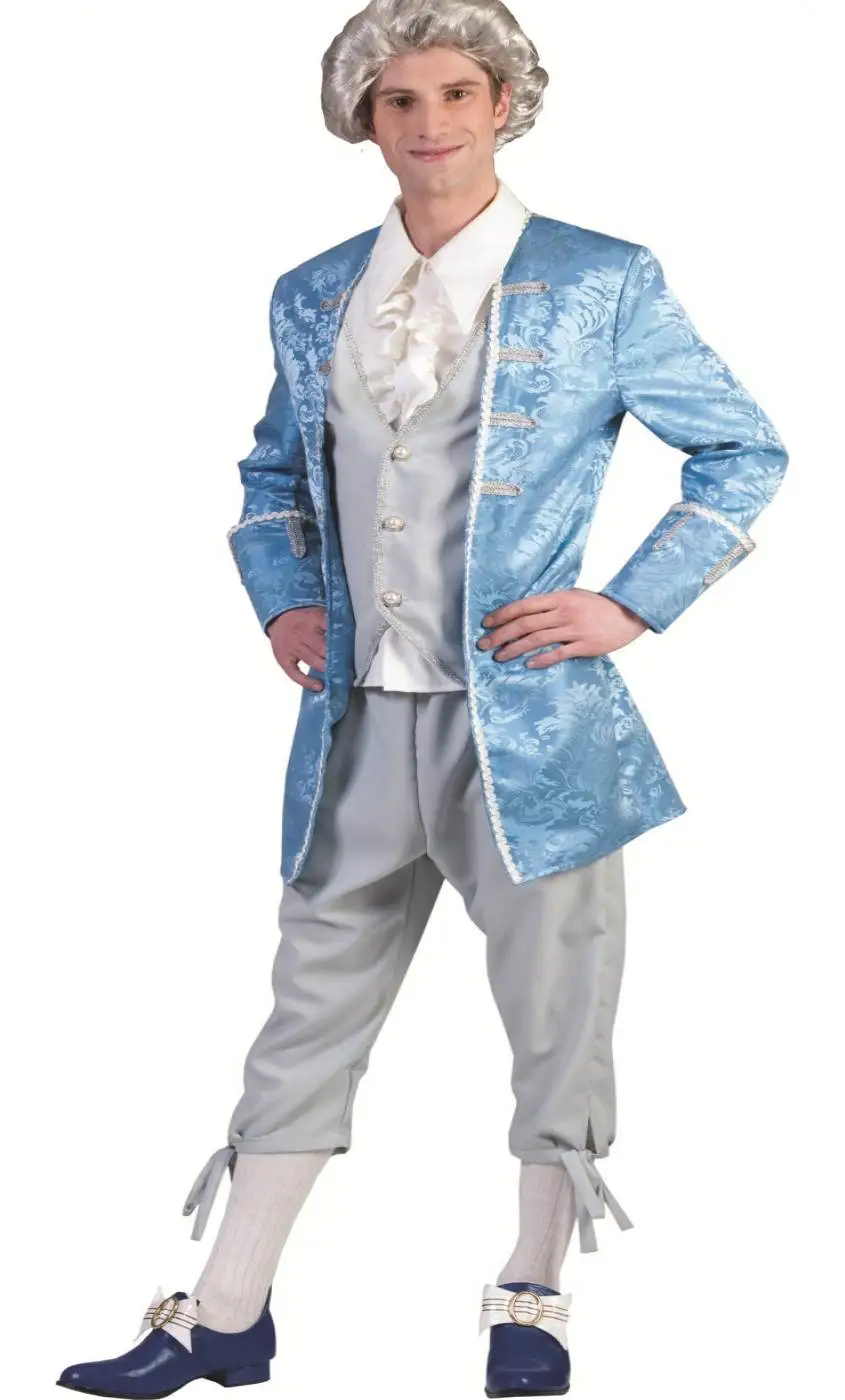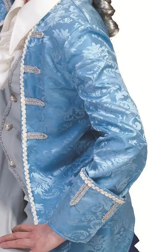 Costume de Casanova bleu ciel pour homme. Une tenue de séducteur, aventurier vénitien du 18ème siècle comparé à Don Juan.