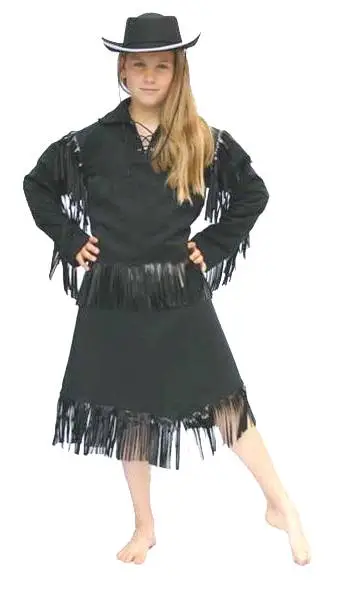 L’ensemble est noir et garni de franges dans le style typique du Western.