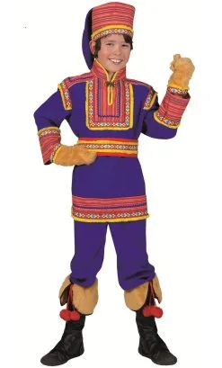 Costume d’esquimau pour enfant. C’est un superbe déguisement de lapon complet, coloré et décoré de motifs ethniques.