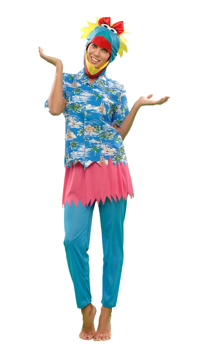 Cet oiseau des îles se compose d’une chemisette, d’une jupe avec petit pompon, d’un pantalon et d’une cagoule indépendante figurant la tête de l’oiseau.
