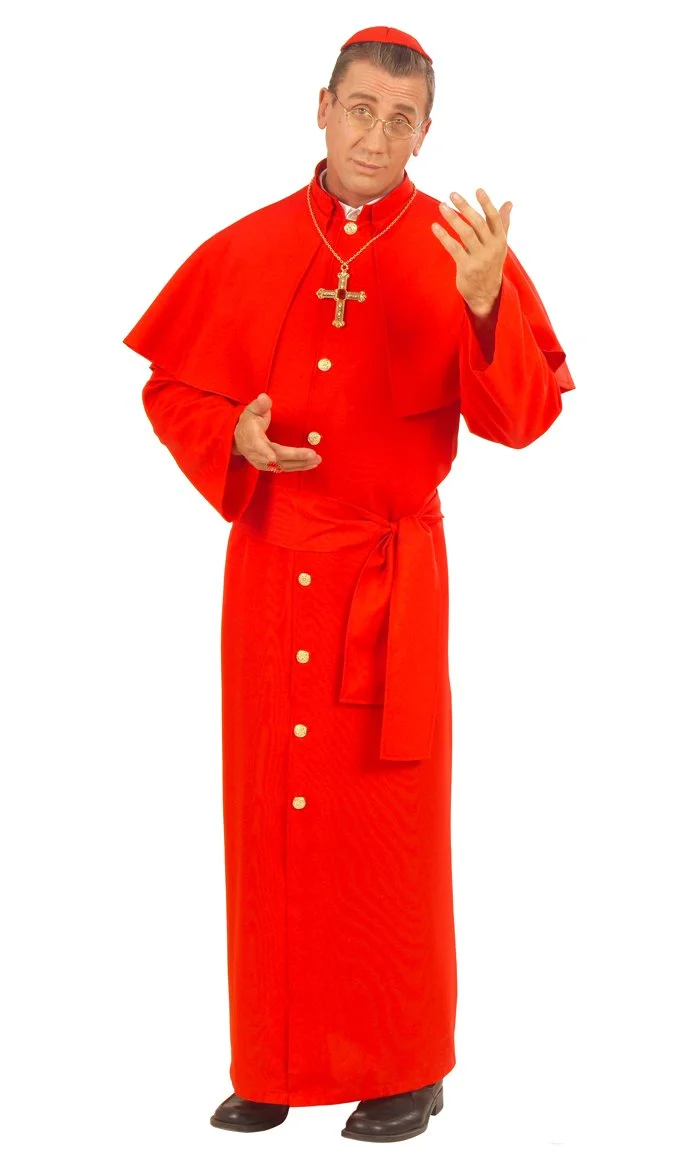 Le costume se compose d’une robe de Cardinal avec cape d’épaule, ceinture et coiffe.