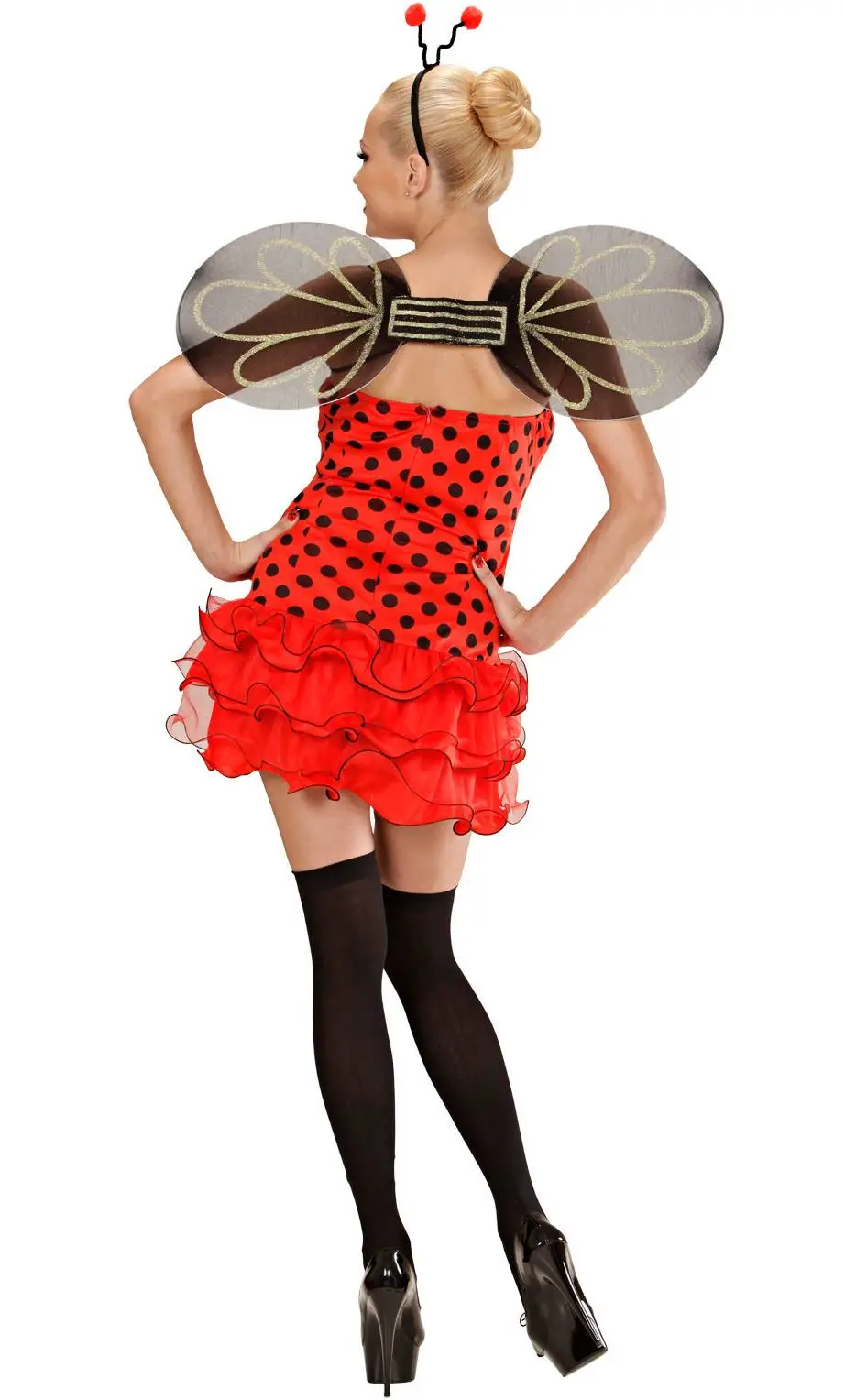 Le costume est composé d’une jolie robe à motif coccinelle avec ailes et antennes.