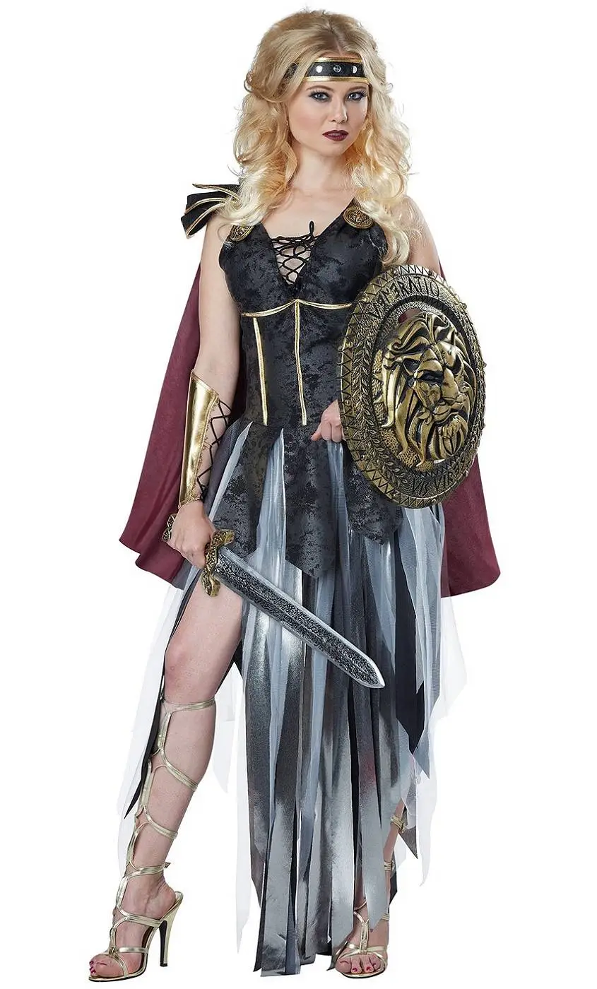 Ainsi costumée, vous allez incarner une magnifique gladiatrice. Armez-vous d’un bouclier et d’un glaive pour combattre dans l’arène, c’est plus prudent !