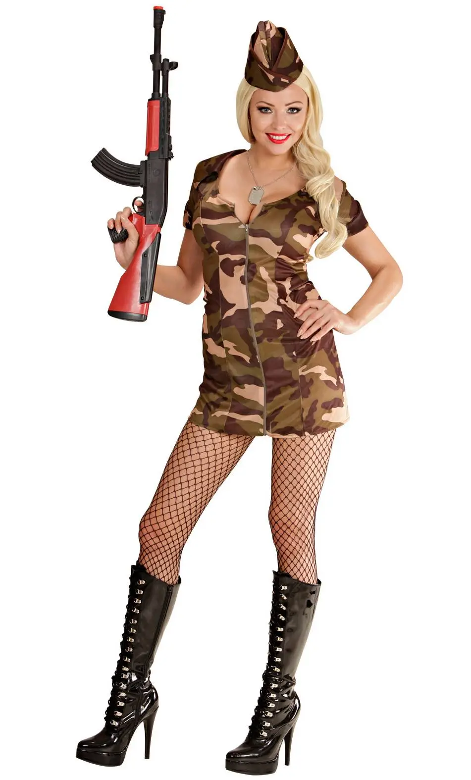 Le costume est composé d’une robe militaire fermée devant par un zip et d’un béret.