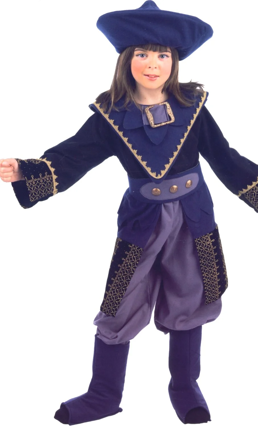 Ce superbe costume est composé d’une veste avec col, d’un pantalon, d’une paire de sur-bottes. Le chapeau de pirate est fourni avec la tenue.