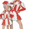 Le costume comprend la jupe et le top de pompom girl aux couleurs bleu-blanc-rouge.