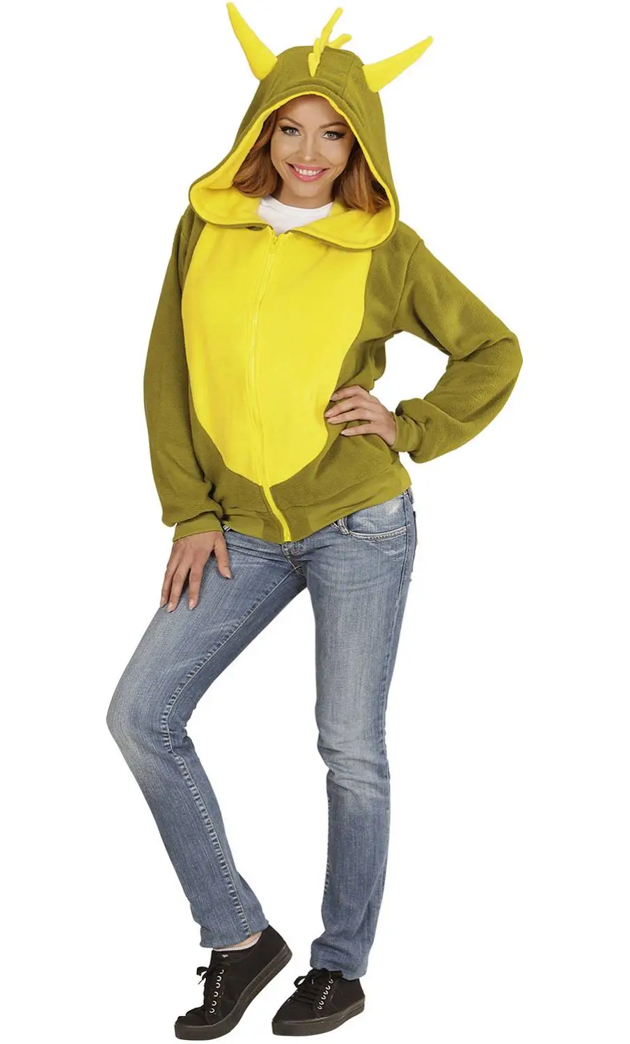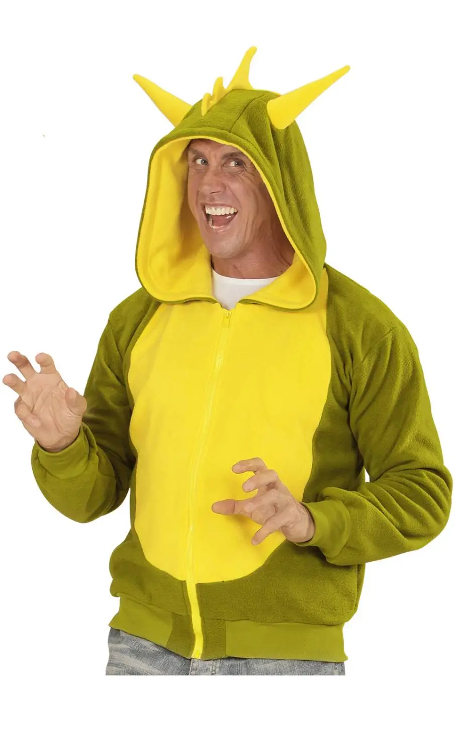 Déguisement de dragon pour adulte. Ce sweat à capuche est en tissu polyester molletonné.