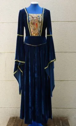 Cette tenue bleu nuit est celle d’une femme noble du Moyen Âge.