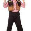Ce déguisement d’Oncle Sam se compose d’une veste, d’une chemise avec devant de gilet et noeud papillon attenant, d’un pantalon élastiqué à la taille et d’un chapeau en panne de velours.