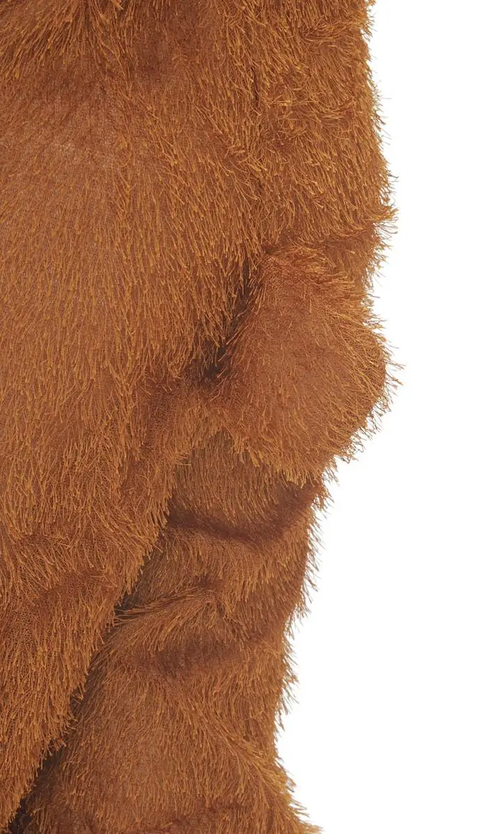 Déguisement d’ours pour enfant composé d’une combinaison en peluche marron avec capuche et avec petite queue.