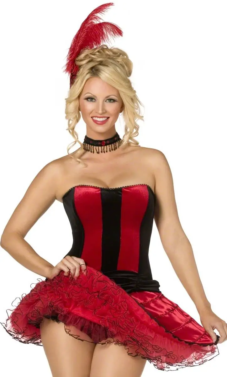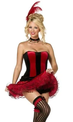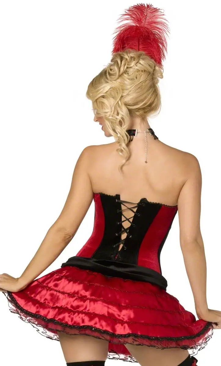 Déguisement Saloon, cabaret ou cancan rouge et noir.