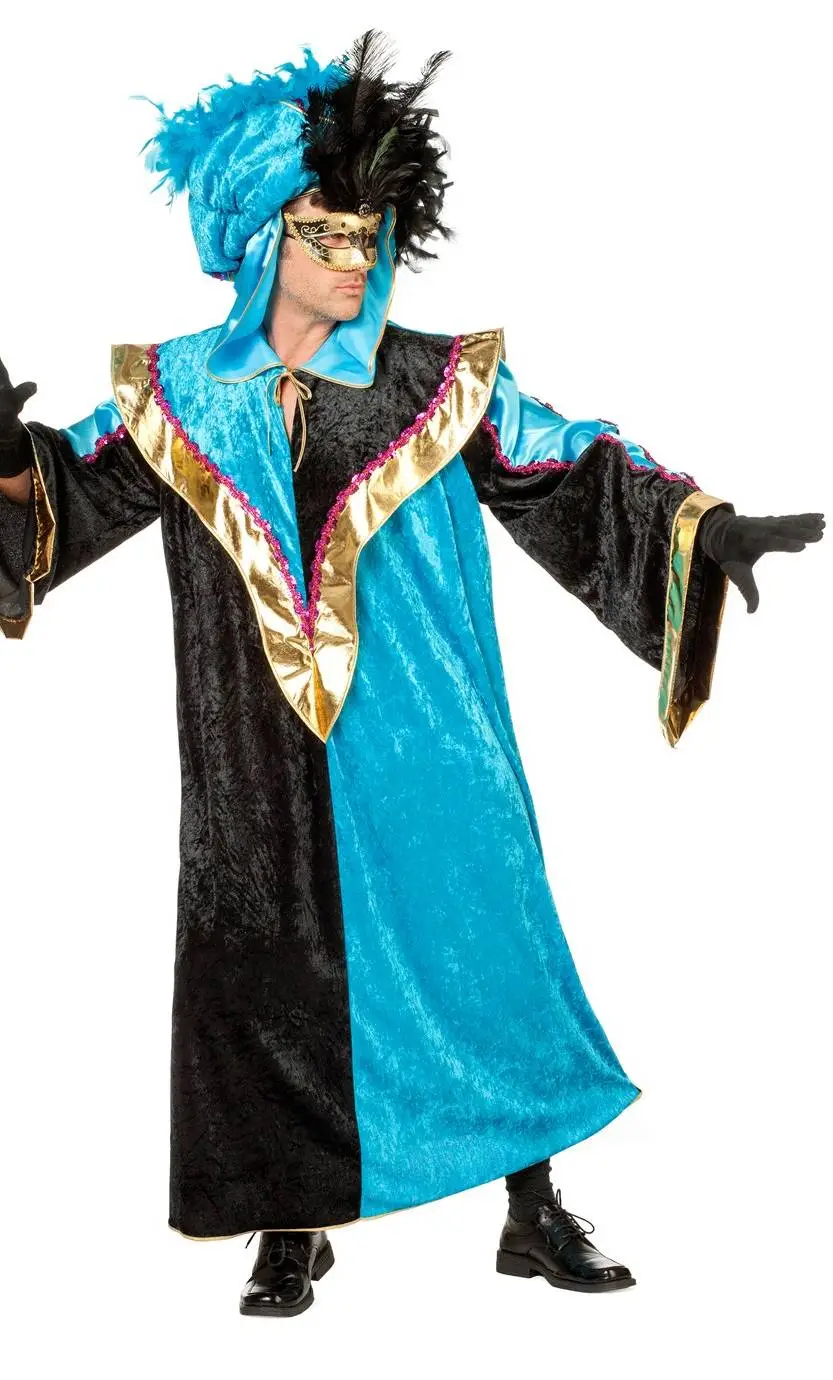 Le costume comprend une longue tunique avec capuche et cape d’épaules attenantes fournie avec un chapeau assorti.