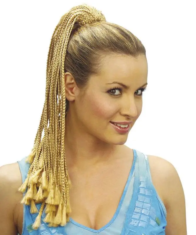 Extension blonde composée d’une soixantaine de tresses montées sur pince.