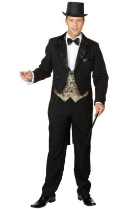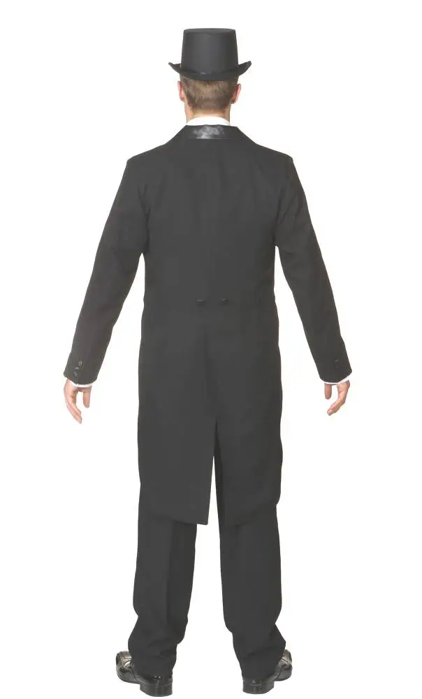Frac noir pour homme. Veste queue de pie de qualité luxe et entièrement doublée. Elle est idéale pour un maître de cérémonie ou un magicien.