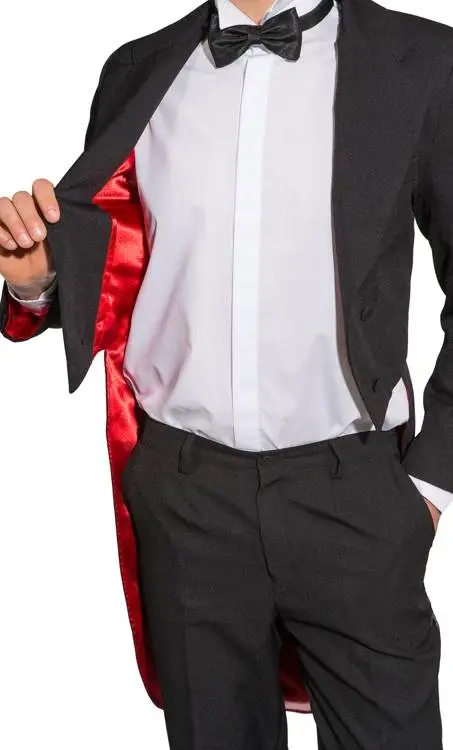 Cette variante bicolore du frac est un modèle très distingué, il change de la traditionnelle veste queue de Pie noire. Le satin rouge évoque de manière discrète la séduction et le mystère.