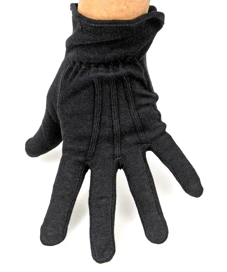 Gants noirs pour femme en matière coton. Ce sont des gants avec 3 nervures sur le dessus en taille unique femme.