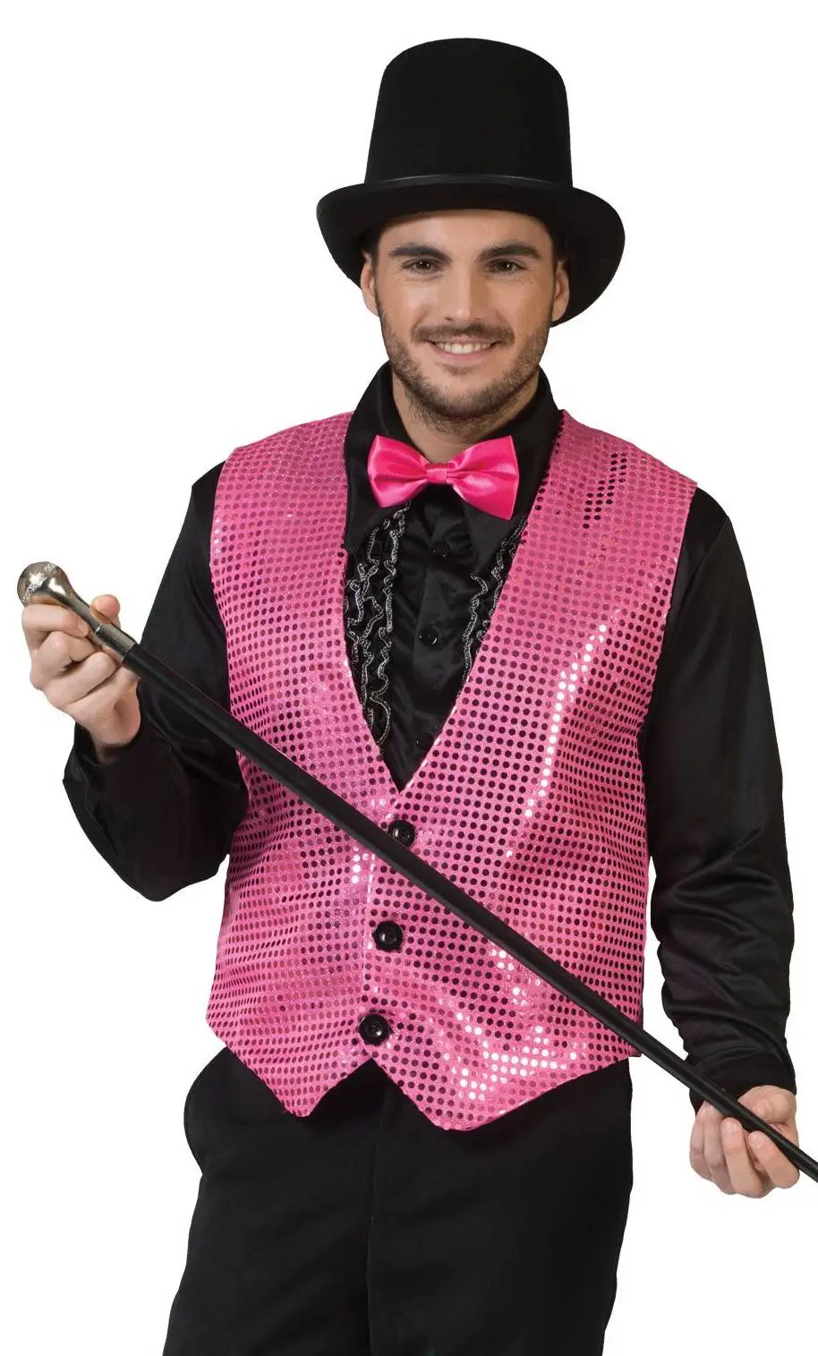 Gilet rose pailleté de style Cabaret pour homme en grande taille.