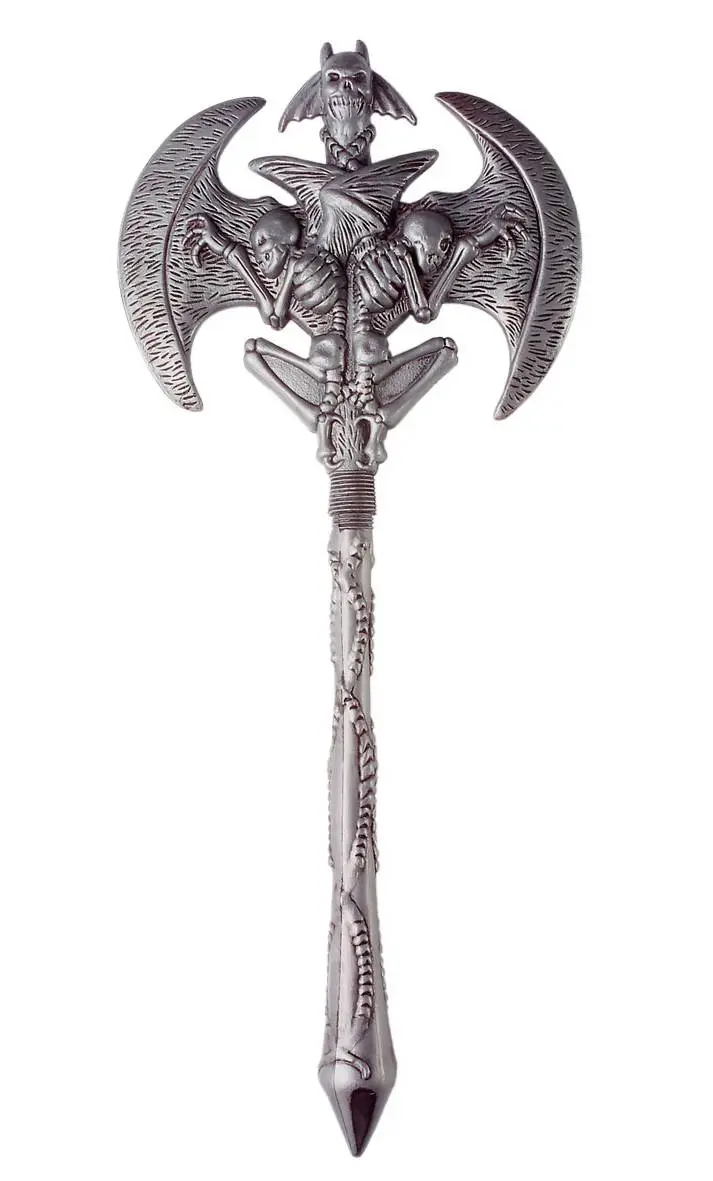 Double hache médiévale sculptée, en plastique.