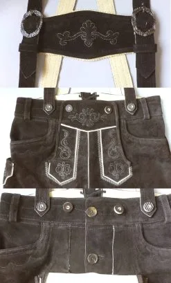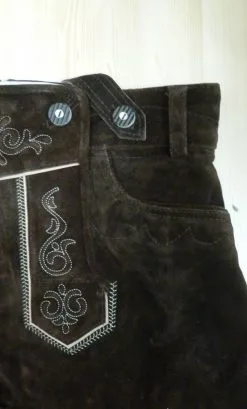Ce pantalon tyrolien est marron foncé alors qu’il parait plus clair sur la photo (voir photo supplémentaire).