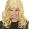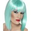 Perruque jaune fluo à petit prix, les cheveux synthétiques sont courts et la coupe est rapprochée du cou.
