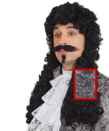 Moustache et bouc ne sont pas fournis avec la perruque mais Louis XIV n’en portait pas sur la plupart des portraits de l’époque !