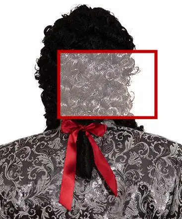 Cette coiffure Louis XIV est munie de long rouleaux sur les côtés qui descendent sur environ 28cm. Les cheveux sont réunis à l’arrière et forment une queue appelée catogan.