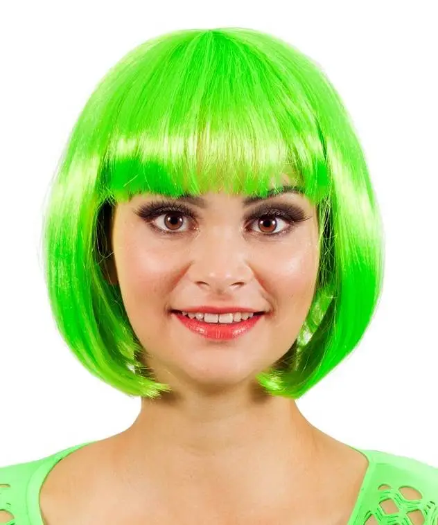 Perruque verte de style Cabaret à la coupe au carré avec frange.