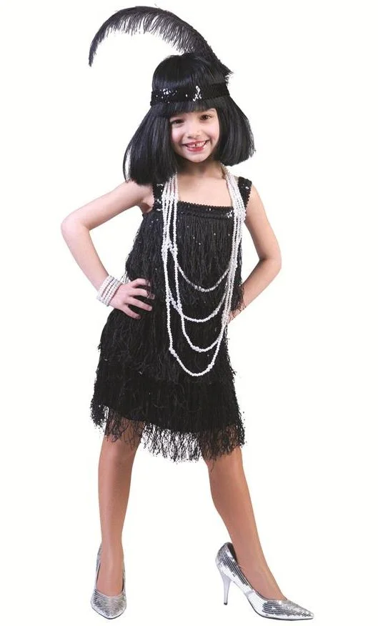 Ce costume décoré de paillettes et de franges emporte votre fille dans les années 1920, au début du music hall.
