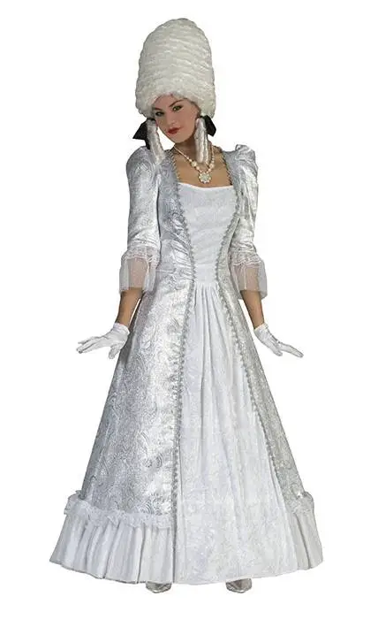 Avec cette magnifique robe vous pourrez incarner une marquise immaculée présente à la cour de France, une des plus prestigieuse d’Europe pour l’époque.
