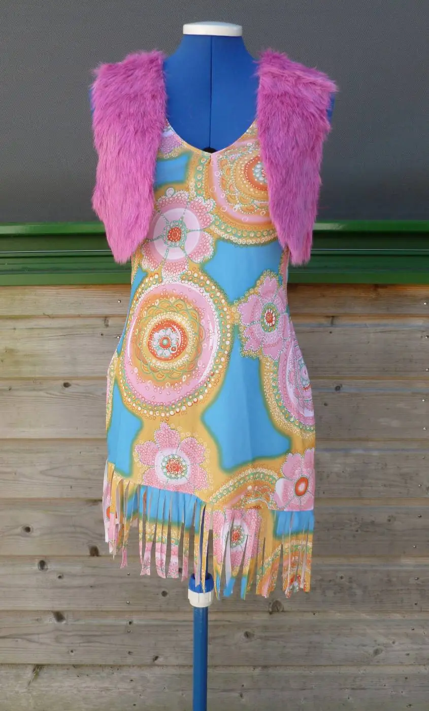 Le costume comprend la robe hippie, le boléro et le bandeau.