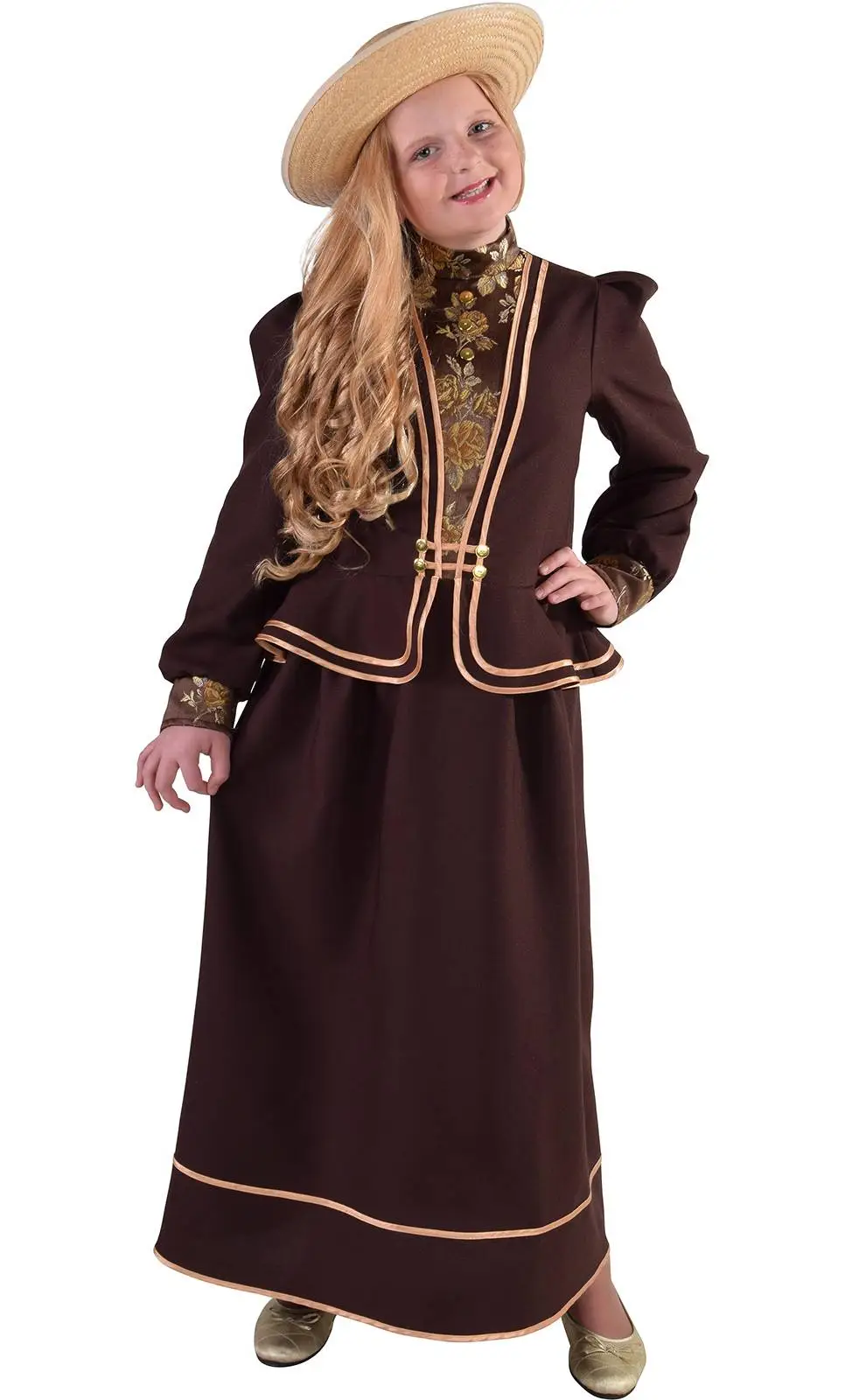 Robe époque victorienne ou robe 1900 pour fille. Une tenue rétro de très belle qualité pour un défilé ou une pièce de théâtre.