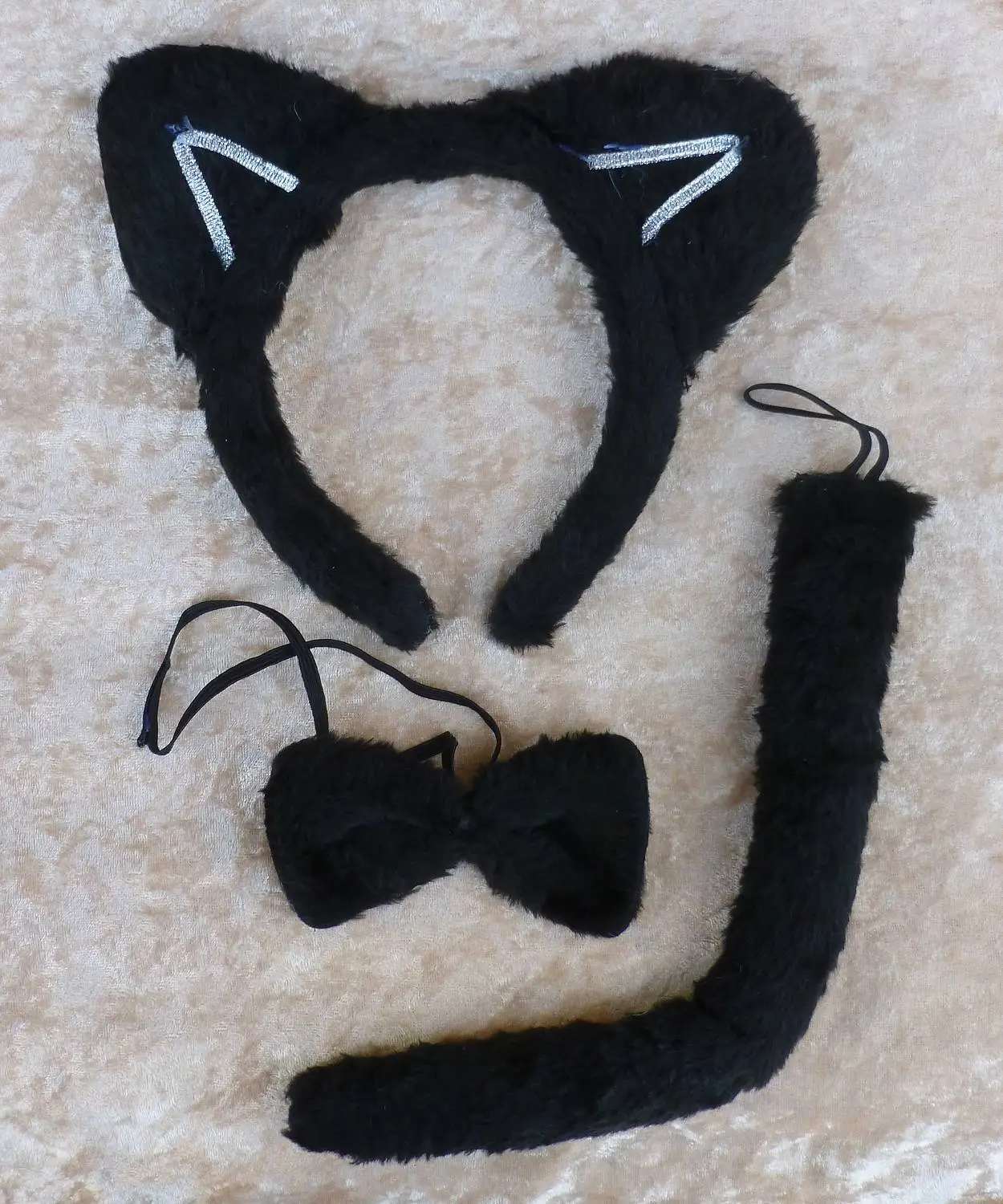 Composition : Serre-tête avec oreilles + noeud papillon + queue de chat.