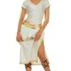 Ce costume est composé d’une robe noire, version courte, avec décor or et bandeau pour les cheveux.