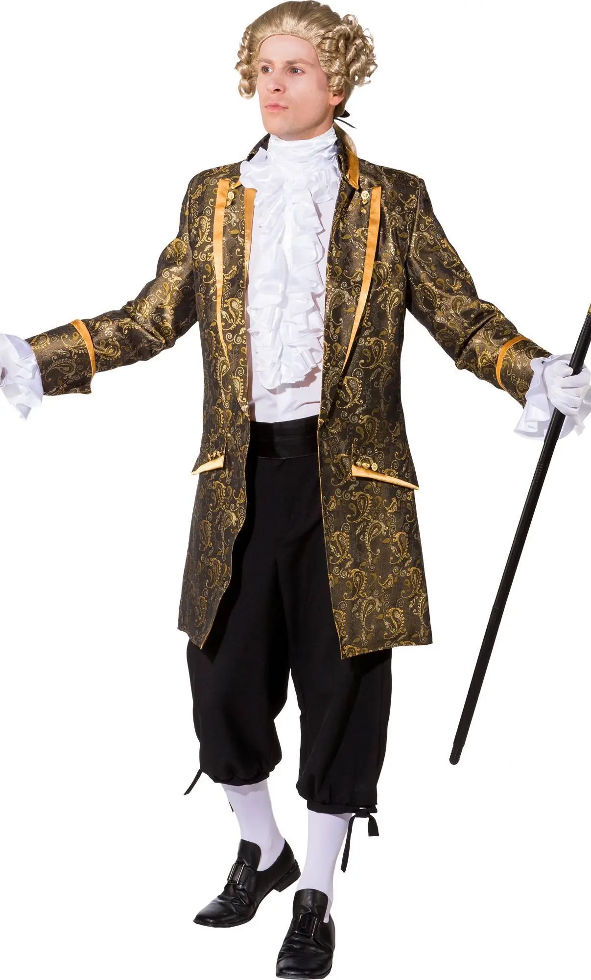 Veste de marquis en grande taille pour homme. C’est une superbe veste à motifs brocart de belle qualité entièrement doublée de satin doré.
