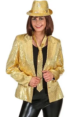Vos soirées disco, casino ou cabaret seront illuminées par cette veste à paillettes dorées.