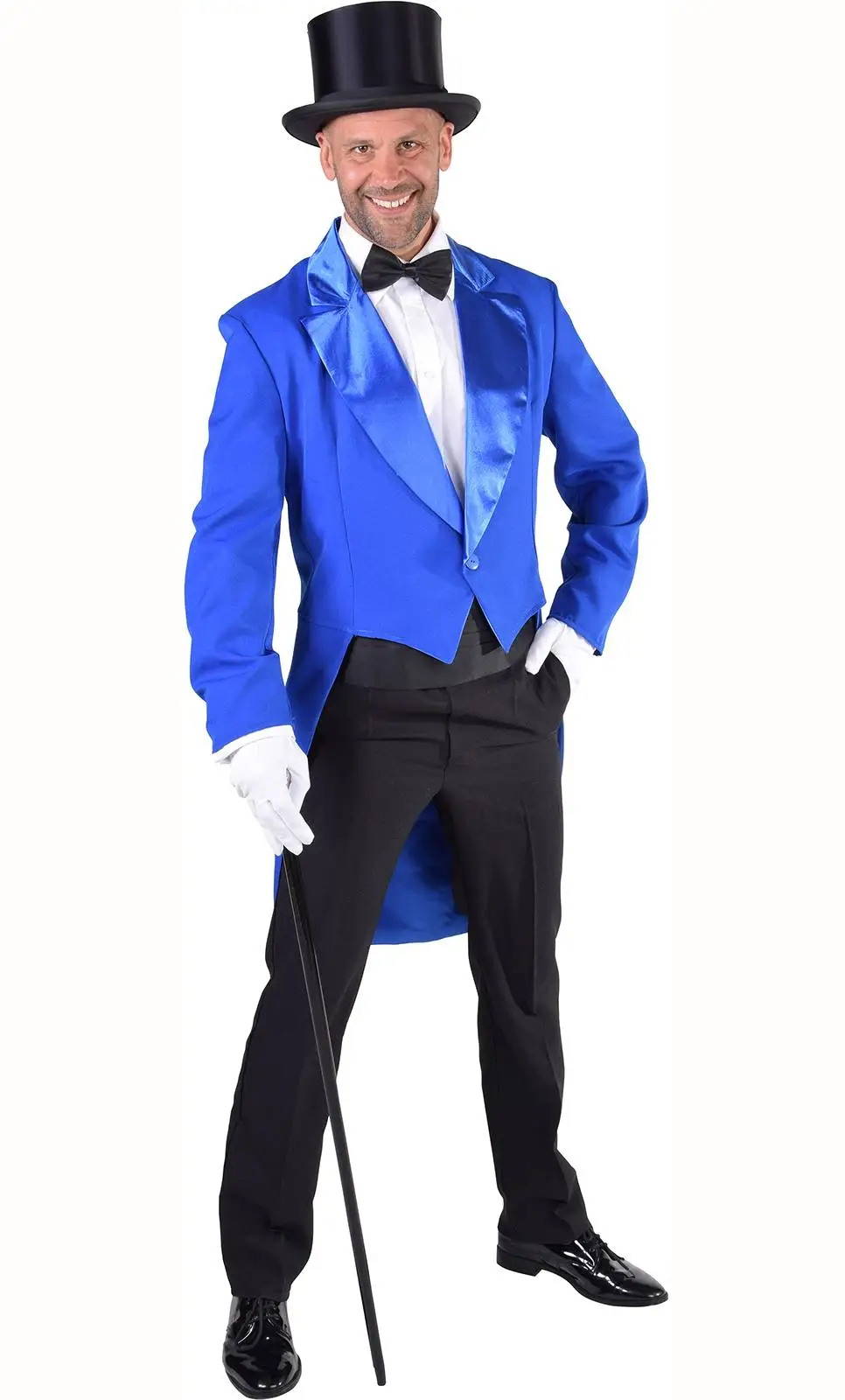 Veste queue de pie dite ‘Frac’ bleu roi pour homme en grande taille.